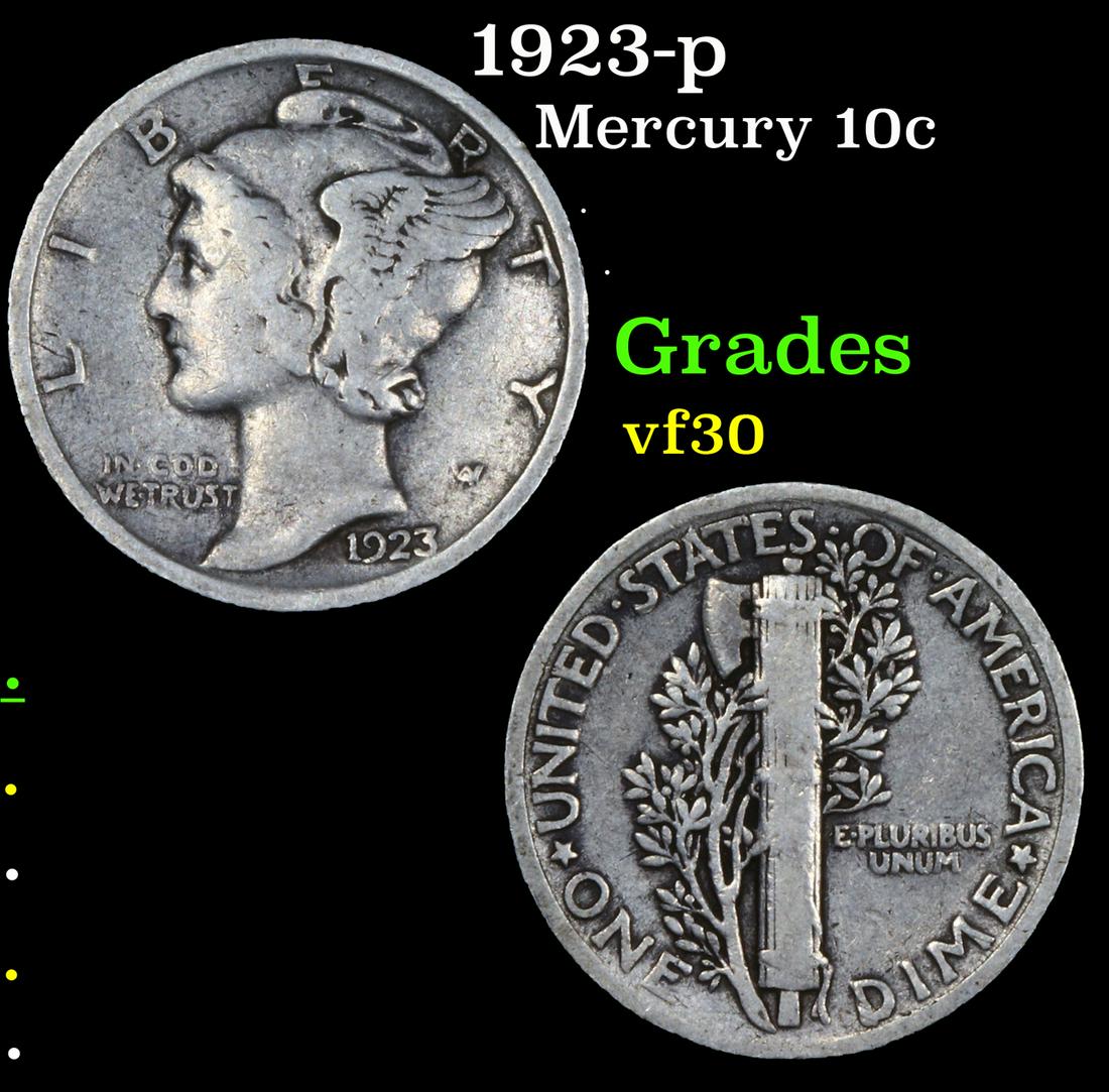 1923-p Mercury Dime 10c Grades vf++