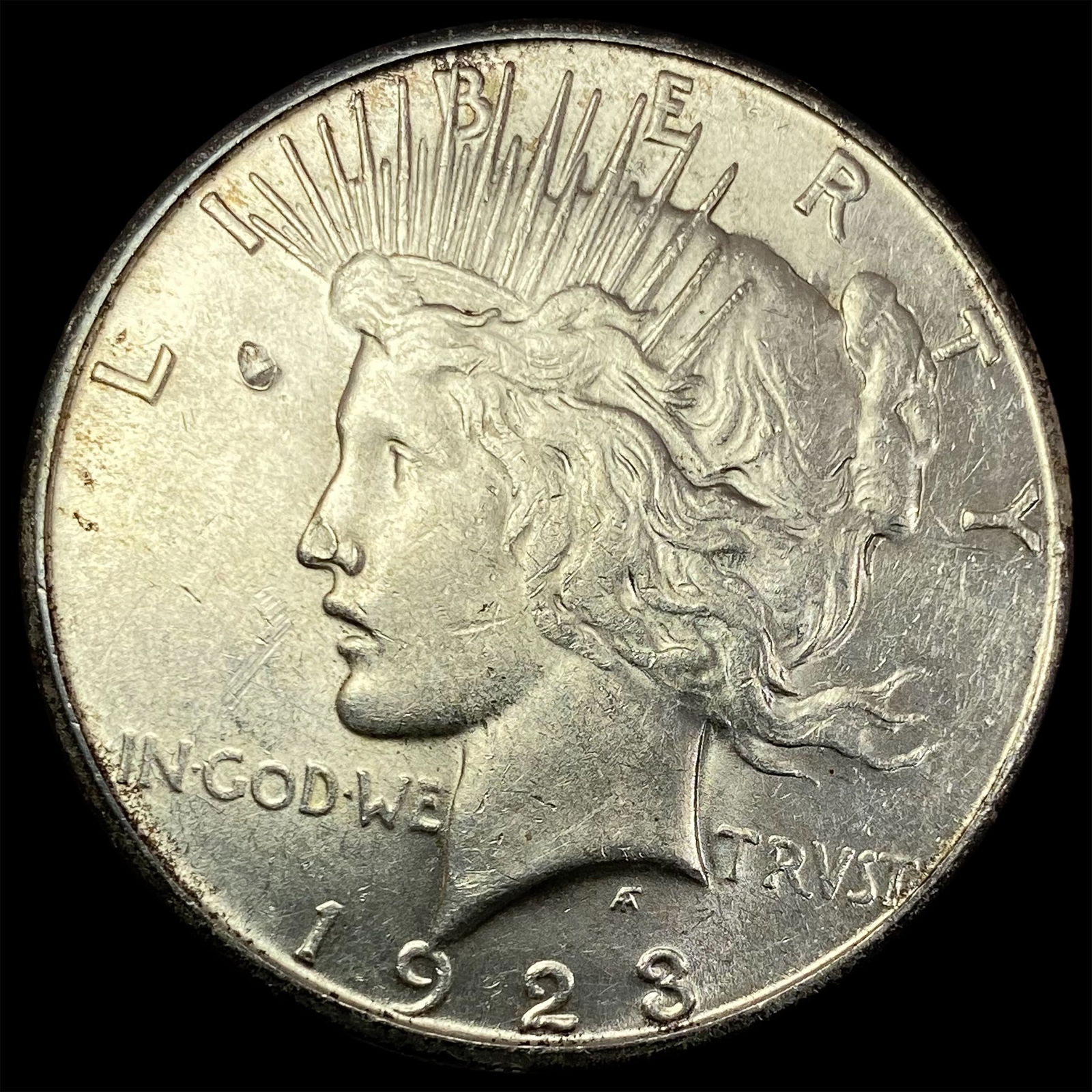 Sold1923 P Peace Silver Dollar UNCGreat obverse with an extraordinary amount of eye appeal. Fantastic opportunity knocking...see the photos...Good Luck!!!See Sold Price
