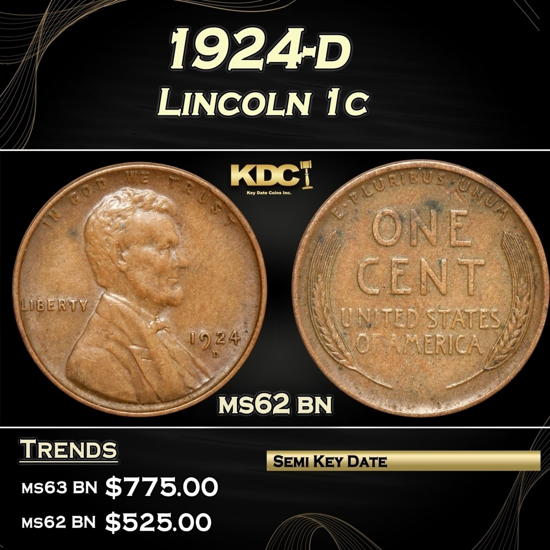 1924-d Lincoln Cent 1c Grades Select Unc BN