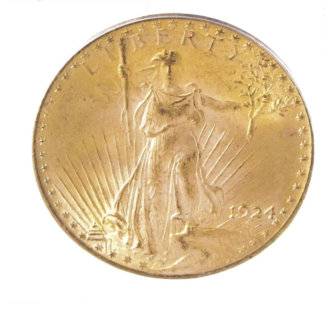 Sold$20.00 Gold 1924 PCGS MS65+.$20.00 Gold 1924 PCGS MS65+. Assertive Legends and design features are accentuated by glistening icy-satin surfaces. Est. $2400.See Sold Price