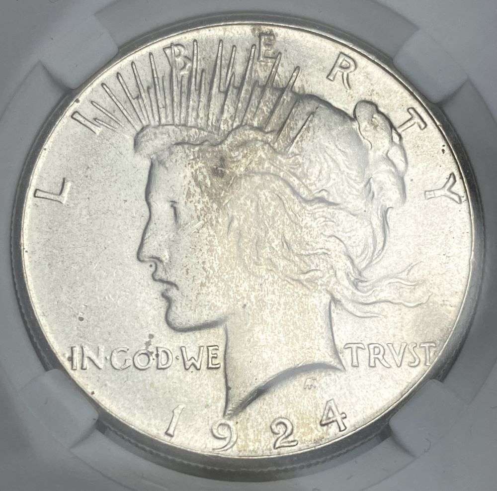 Sold1924 Brilliant Uncirculated Peace Silver Dollar Graded MS63 By NGC Grading Co.1924 Brilliant Uncirculated Peace Silver Dollar Graded MS63 By NGC Grading Co.See Sold Price