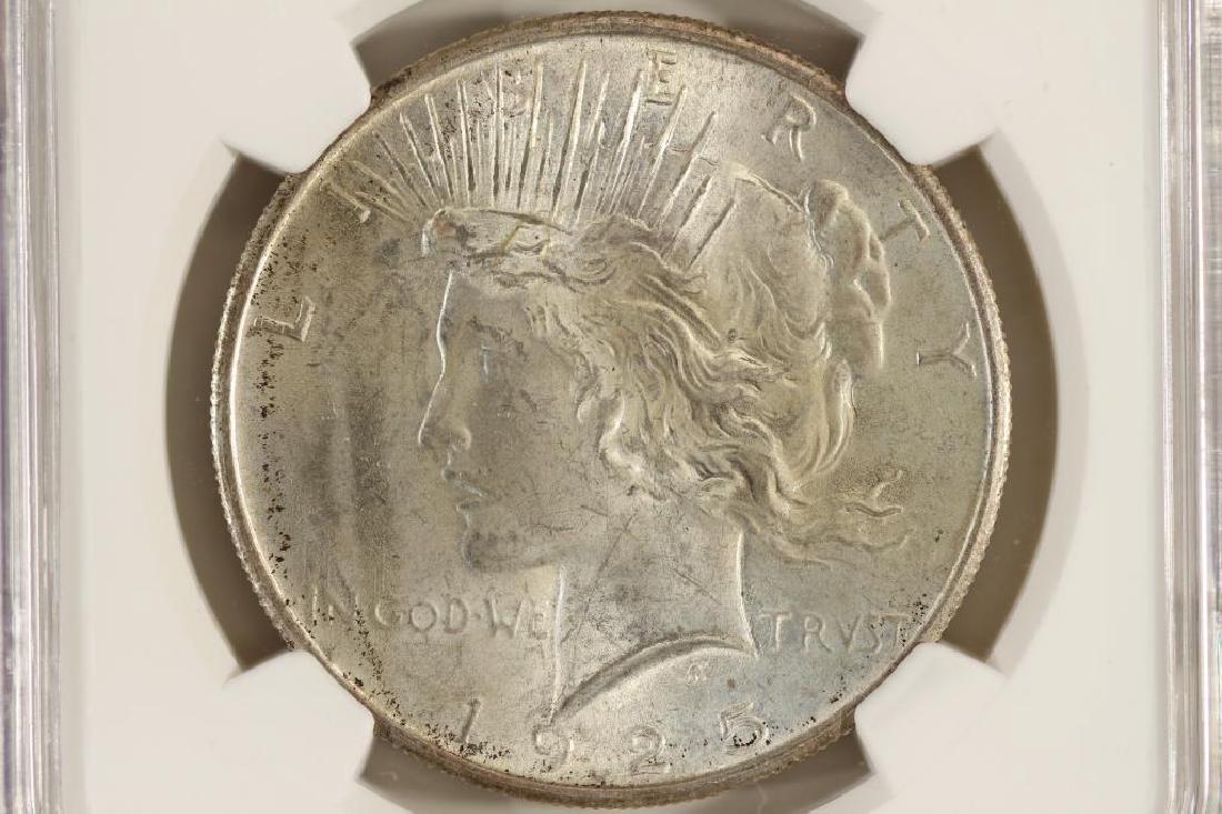Sold1923 & 1925 PEACE DOLLARS NGC CERTIFIED MS631923 & 1925 PEACE DOLLARS NGC CERTIFIED MS63 Two NGC certified MS63 slabbed Peace one dollar silver coins, each Philadelphia mint. Shipping / Pickup: We Can Ship This ItemSee Sold Price