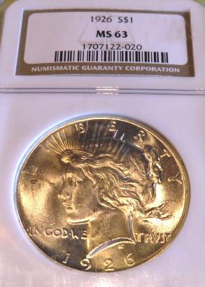 1926 Peace Dollar NGC MS64 Certified Silver Coin
