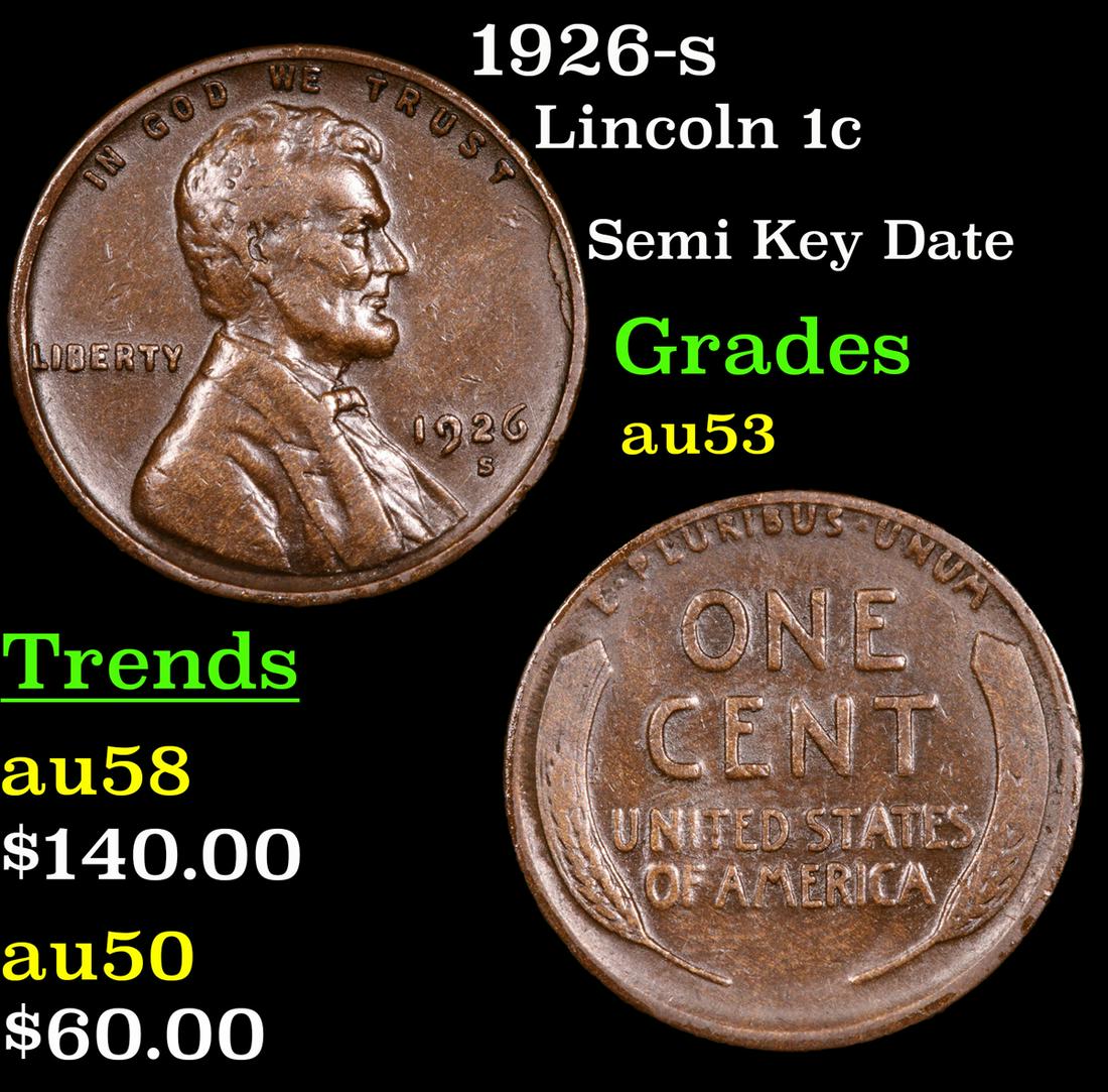 1926-s Lincoln Cent 1c Grades Select AU