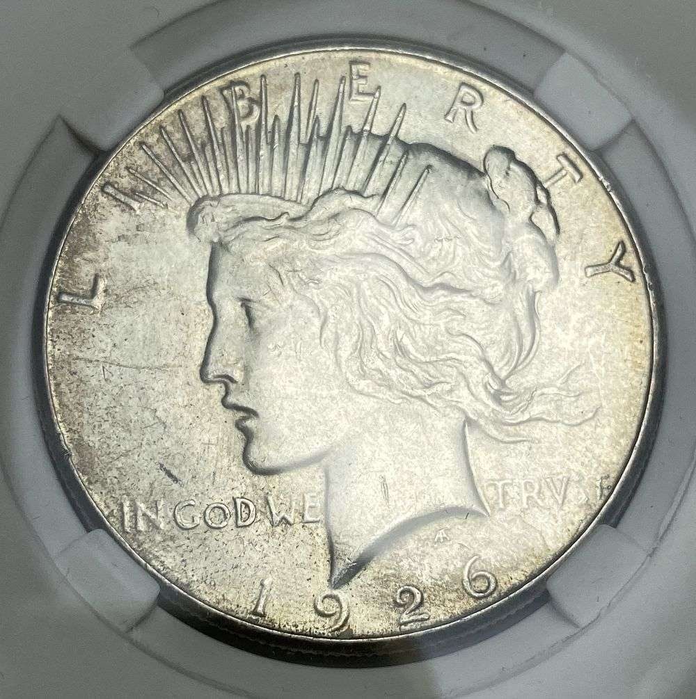 Sold1926 Peace Silver Dollar MS65+We do not agree with the grade that is on this holder. Winner shall receive the exact coin shown here. (IB)See Sold Price