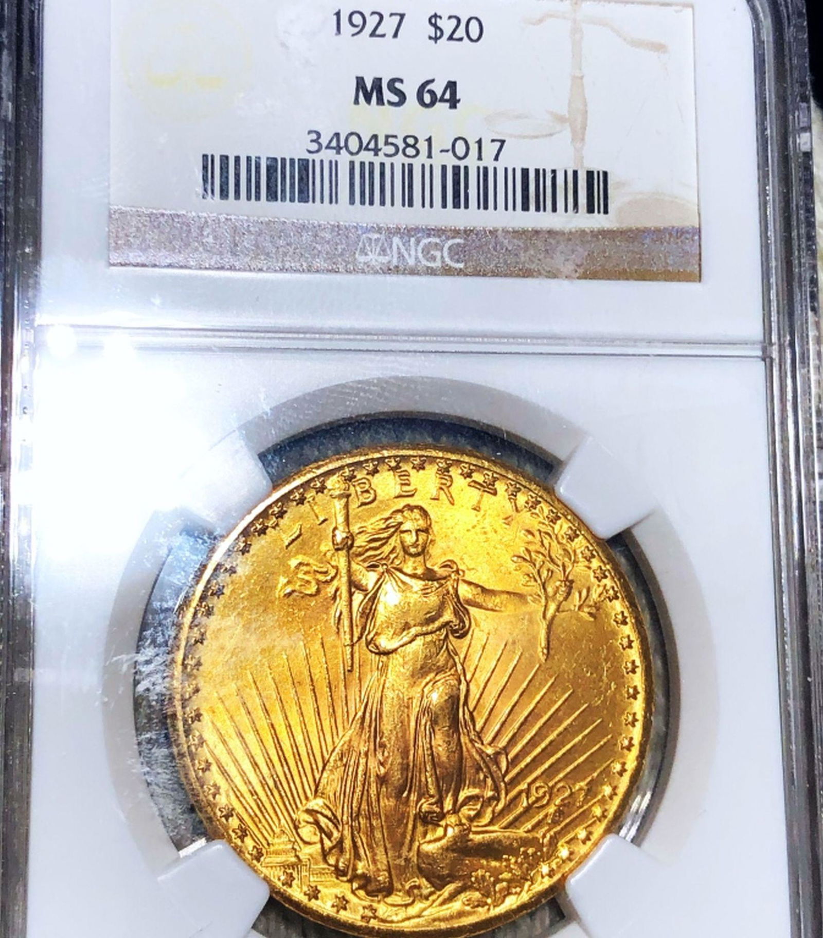 Sold1927 $20 GOLD DOUBLE EAGLE CHOICE MS 64 NGC SLAB1927 $20 Gold Saint Gaudens NGC MS64 Choice Graded American Double Eagle Coin., FROM A LOCAL ESTATESee Sold Price