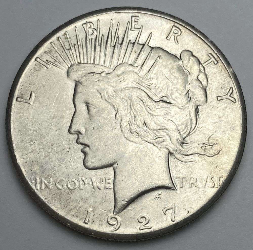 SoldUNITED STATES SILVER 1927-S MS64 S$1 PEACE DOLLAR COINUNITED STATES SILVER 1927-S MS64 S$1 PEACE DOLLAR COIN Professionally graded and slabbed by PCGS.Provenance: Property from the estate of Hugh David Snyder II, Staunton, VA.See Sold Price