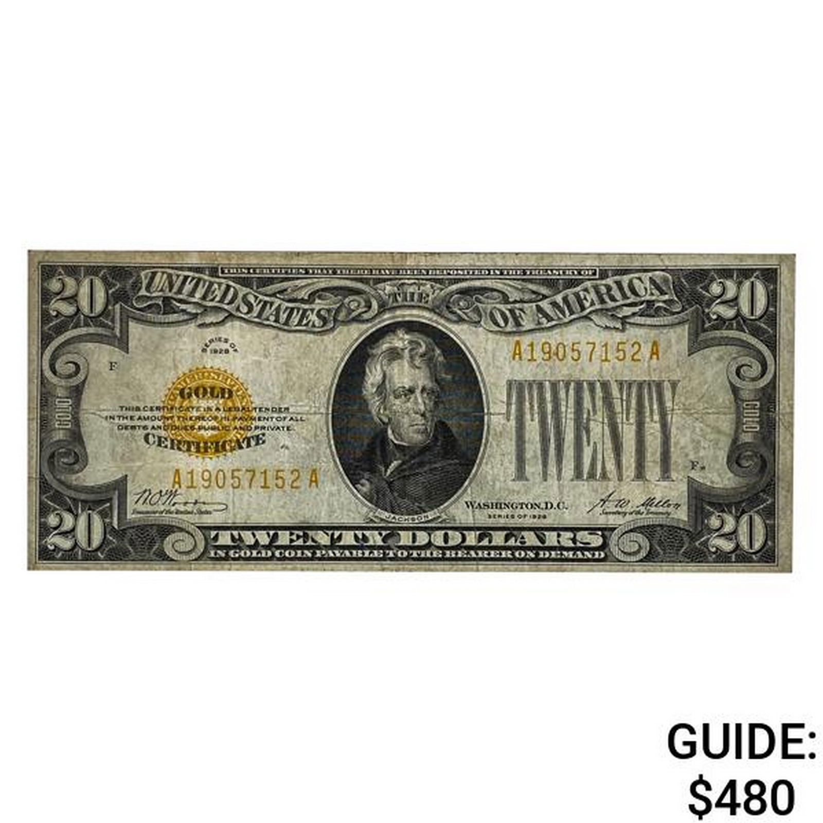 1928 $20 GOLD CERTIFICATE NOTE VERY FINE