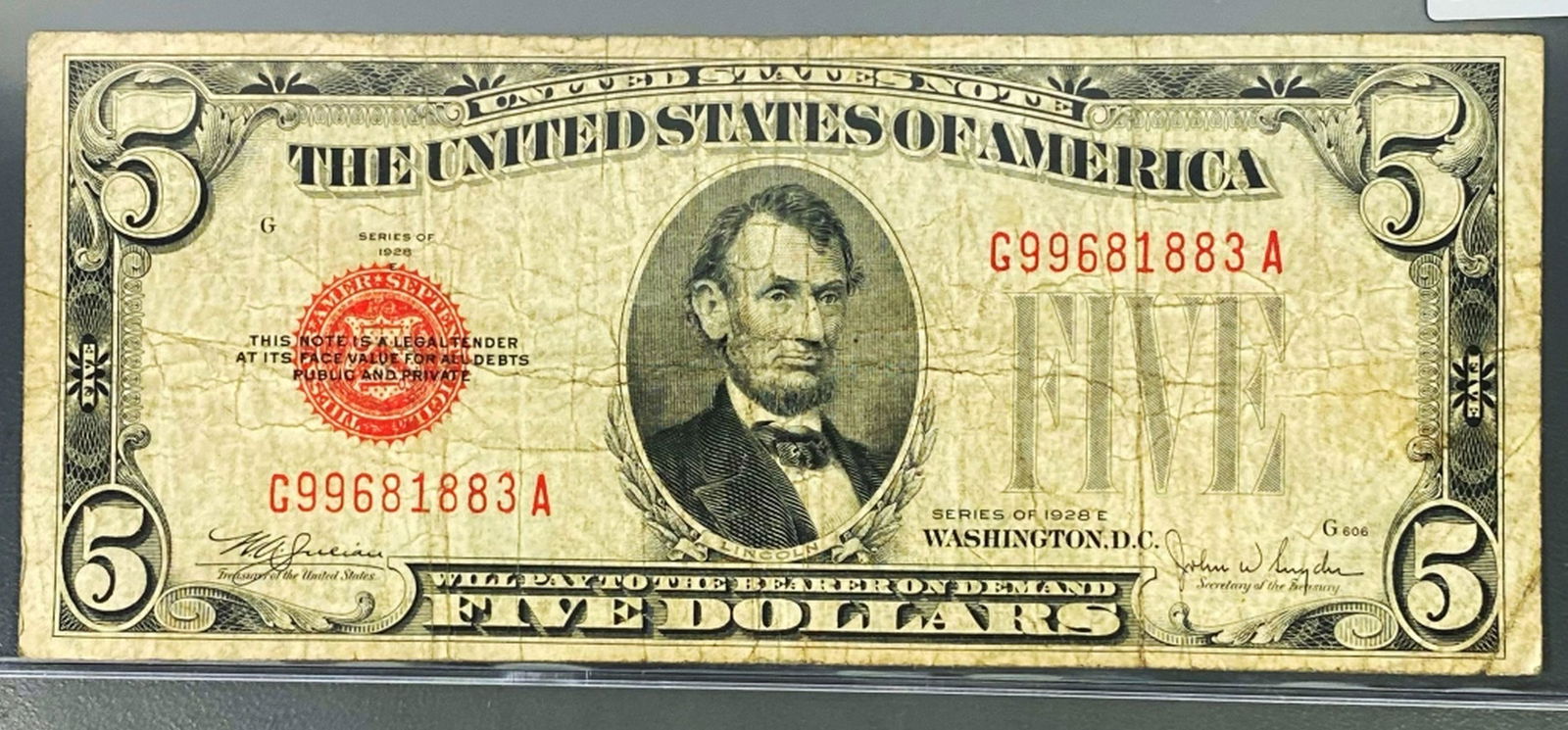 1928 $5 Red Seal Bill LIGHTLY CIRCULATED