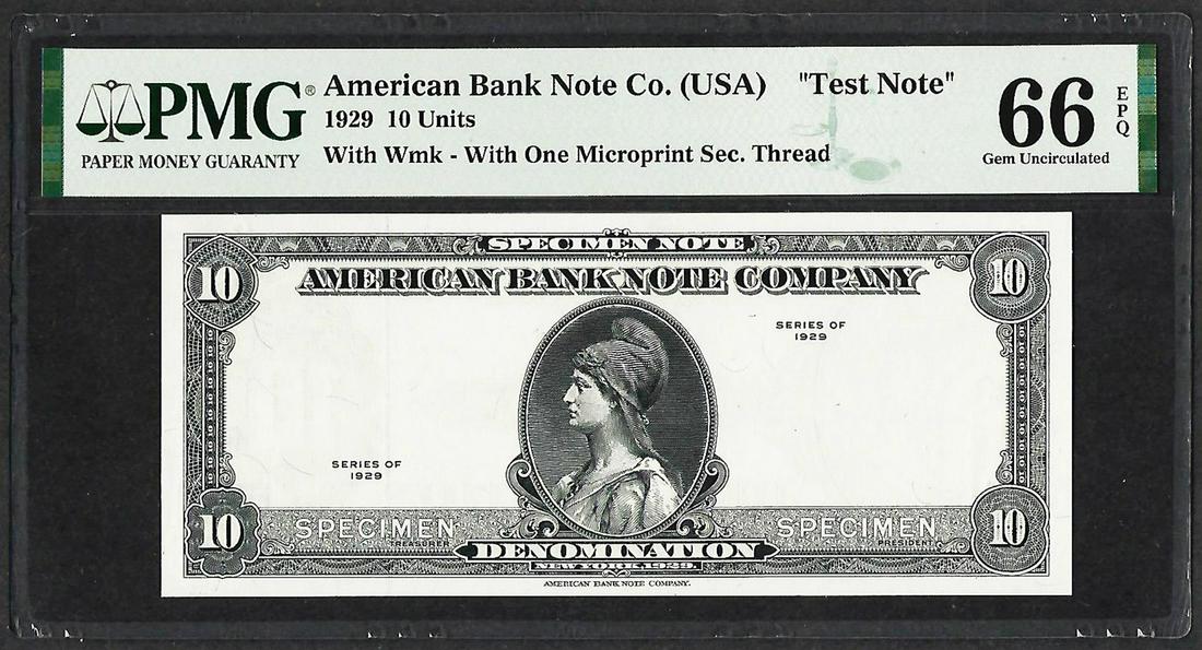 1929 10 Unit American Bank Note Co. "Test Note" PMG Gem