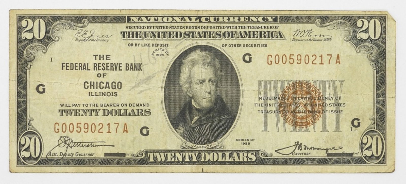 PHILADELPHIA FEDERAL RESERVE NOTE5 days Left1929 $20 FRB of Atlanta, GA Nat'l CurrencyMar 19, 20261929 $20 First National Bank of Erie, PA NoteMar 19, 20261929 $20 Federal Reserve Note Chicago G-A Block Brown Seal FR 1870 GMar 19, 20261929 T-1 $20 National Bank Note Bedford IN Citizens NB FineMar 19, 2026Series of 1929 Twenty Dollar national Currency1929 $20 Federal Reserve Bank Note Atlanta F-A Block Circulated4 days Left(237A) 1929 $20 FIRST NATIONAL BANKNOTE CURRENCY STROMSBURG NEBRASKAMar 10, 20261929 T-1 $20 National Bank Note Valley NB Chambersburg PAMar 20, 20261929 $20 Federal Reserve Bank San Francisco L-A Block Circulated Fine NoteMar 18, 20261928B $2 Legal Tender Note EF Uncertified Currency3 days Left1929 T-2 $20 National Bank Note Rochester PA Charter 2977 First NB VF/XF3 days Left1929 $20 Federal Reserve Note Chicago G-A Block XF1 day Left1929 $10 URBANA, OH NATL CURRENCYJun 24, 20251929 $20 Federal Reserve Bank Note Philadelphia C-A Block XF5 days Left1929 $20 National Bank Note Roscoe PA First National Bank Charter 5495 VFMar 20, 2026