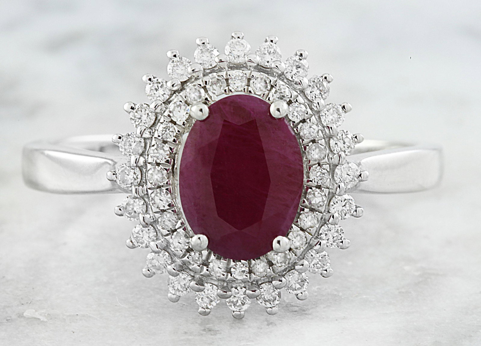 18K White Gold Ladies Ring with 1.52ct Natural Ruby and 1.20ct tw Adjacent DiamondsRiverside Galleries4.5(206)$505 days Left