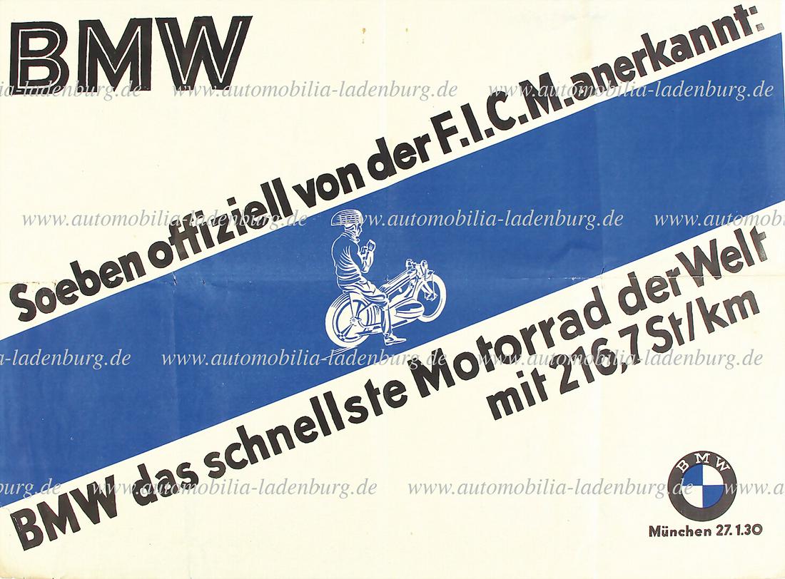 BMW 1930, advertisement poster "BMW - Soeben offiziell von der F.I.C.M. anerkannt: BMW das
