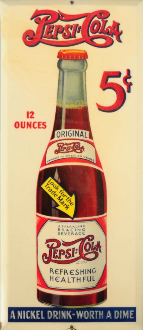 1930 Pepsi Celluloid Bottle Sign.