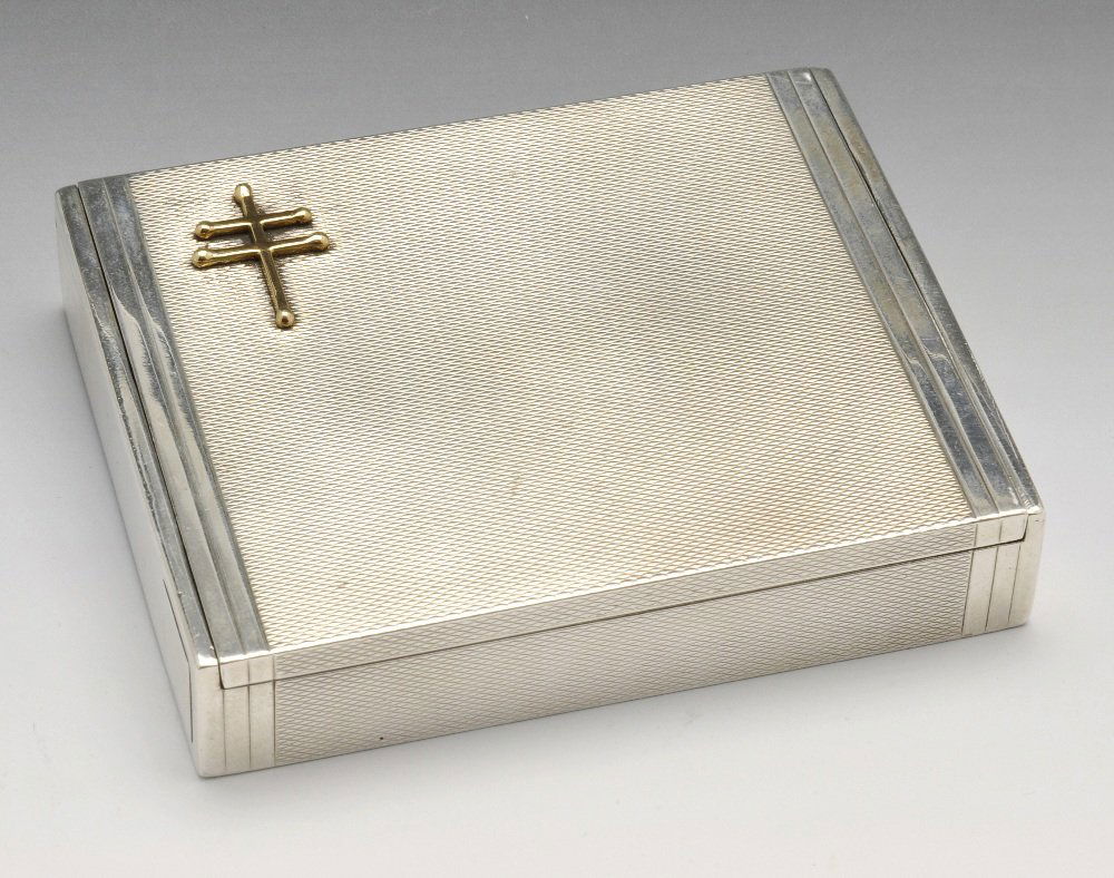 A continental gold cigarette case one side incuse stamped 750, 20th centuryGerman Sterling Silver Cigarette Case with a Sapphire StoneGerman Art Deco Sterling Silver& Mahogany Cigar Box by DunhillA METAL GEM-SET (SYPTOR / V.C.A. METAL) SNUFF BOX OR CIGARETTE CASE, FRENCH, CIRCA 1925–19356 days LeftA silver seal box writing desk companion Asprey & Co Ltd, London 1920England circa 1750 A George II unmarked silver table double snuff boxFeb 18, 2026A silver double tiered cigarette box Asprey & Co Ltd, London 1919Poole Sterling Silver Cigarette/Cigar BoxMar 07, 2026Gold British B&S Cigarette Case Over 162 GramsFeb 22, 2026DERBY AND HORSE RACING INTEREST: a good silver box D & J Wellby, London 1916Art Deco Nickel Silver Dual Compartment Makeup Compact With Mirror7 days LeftA CARTIER JEWELED AND ENAMELED GOLD TABLE BOX NEW YORK, 20TH CENTURY, 14 KARAT4 days LeftA 9 carat gold cigarette case Smith & Bartlam, Birmingham 1929WWII TYPE GERMAN BATTLE F STALINGRAD CIGARETTE CASE5 days LeftArt Deco 1927 German Silver Rock Crystal Enamel Marcasite Box6 days LeftA SILVER SMOKER'S BOX AND COMPENDIUMFeb 17, 2026