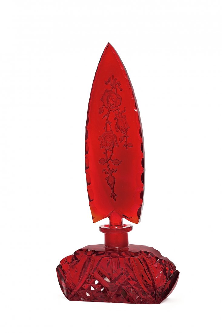 1930s Czechoslovakian ruby red crystal perfume bottle