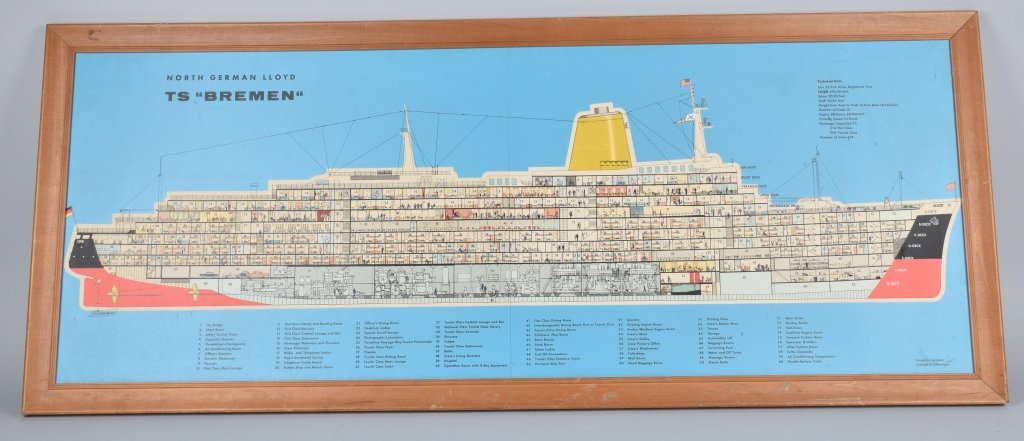 1930s GERMAN SHIP "BREMAN" DECK PLAN SIGN