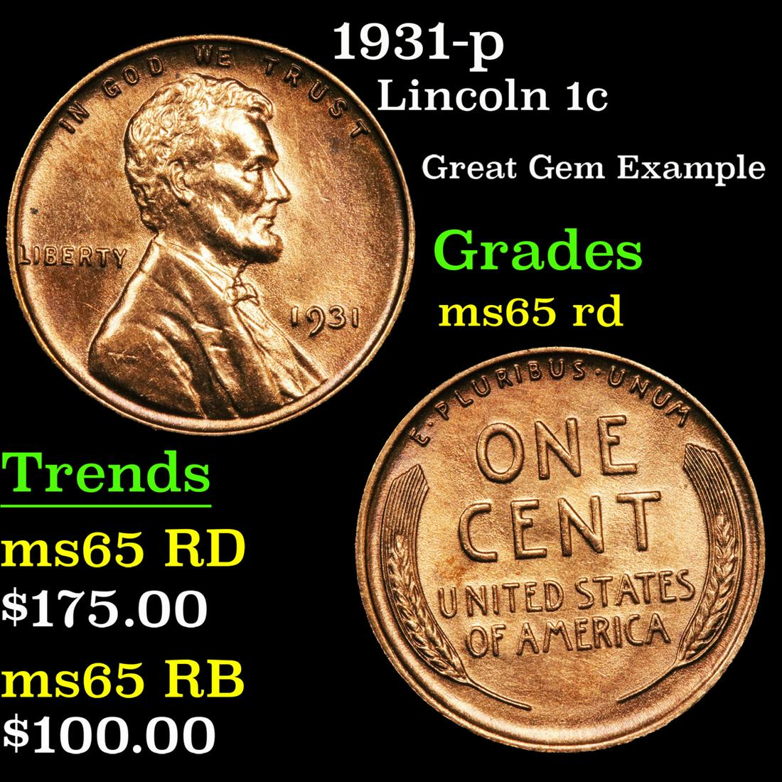 1931-p Lincoln Cent 1c Grades GEM Unc RD