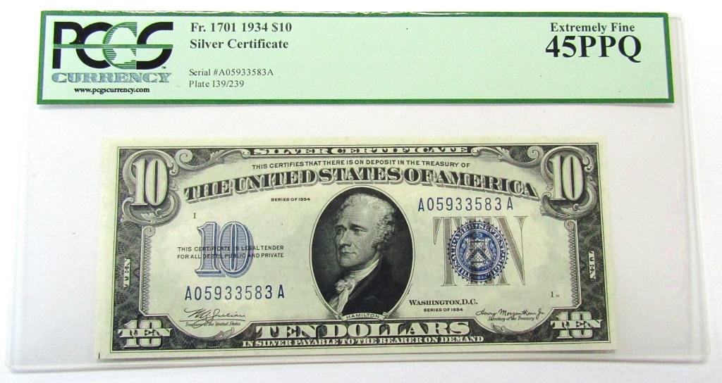 1934 $10 SILVER CERTIFICATE PCGS 45 PPQ