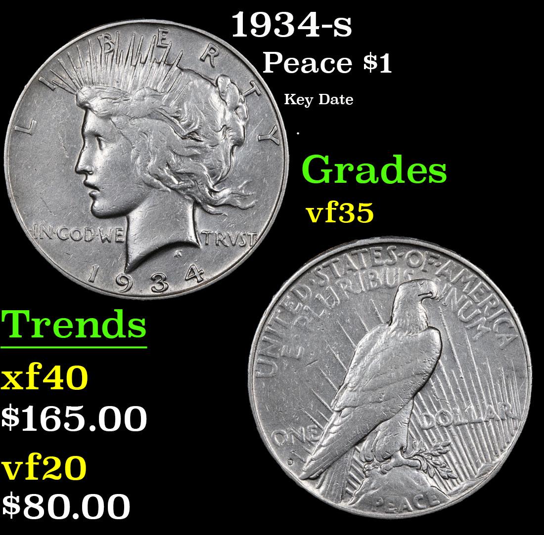 1934 S Peace Dollar $1 Grades Vf++
