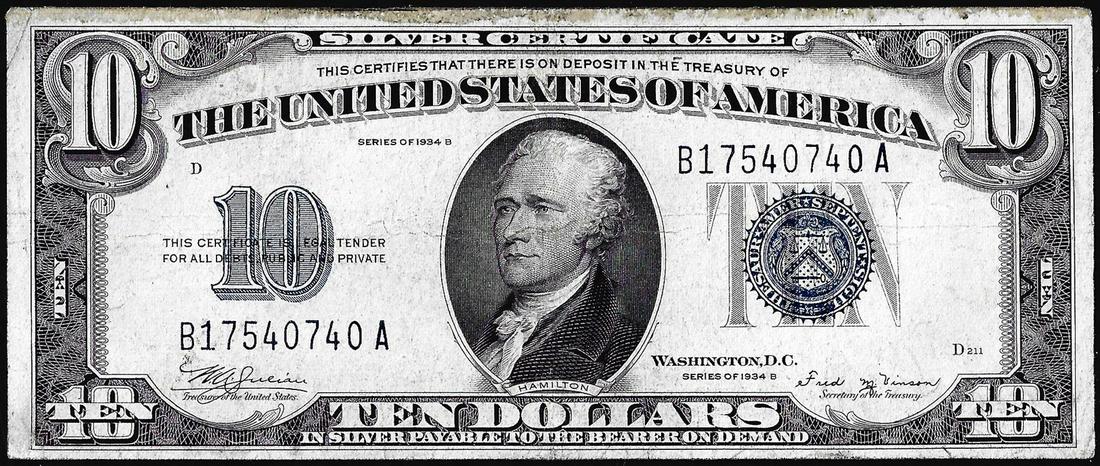 1934B $10 Silver Certificate Note