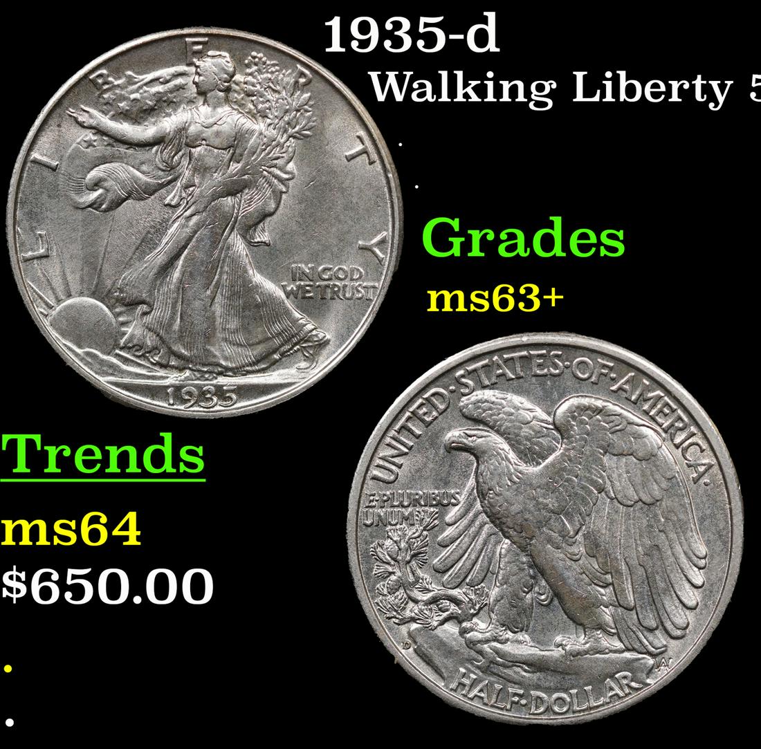 1935-d Walking Liberty Half Dollar 50c Grades Select+ Unc