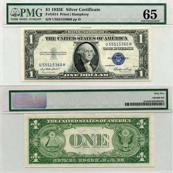 1935-E $1 Silver Certificate Gem UNC 65 PMG