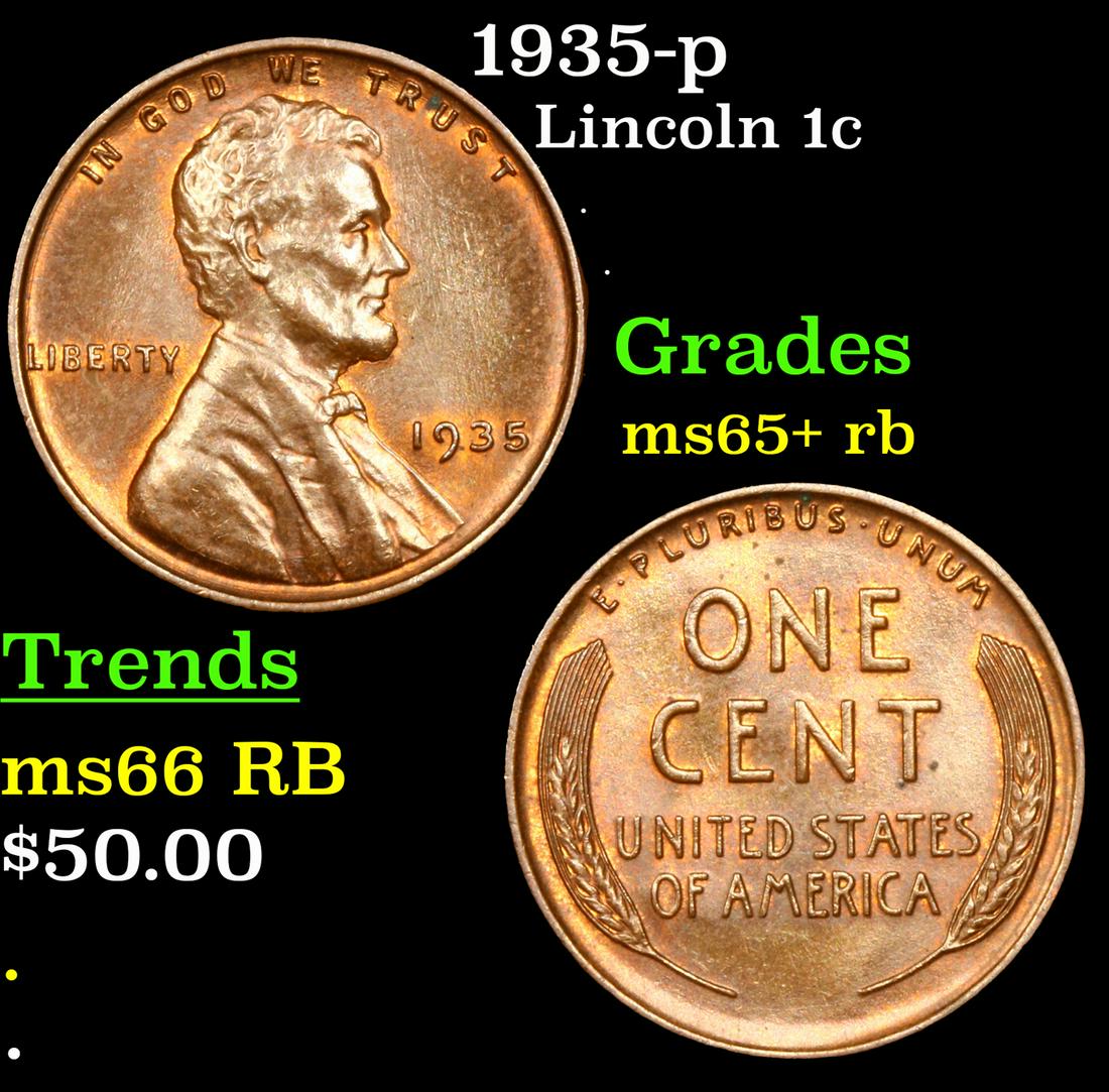 1935-p Lincoln Cent 1c Grades Gem+ Unc RB