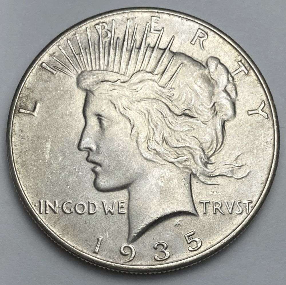 Sold1935 Peace Silver Dollar MS66IMPORTANT NOTE: We do not agree with the grade provided with this "off-brand" grading company. Winner shall receive the exact coin shown here. (RR)See Sold Price