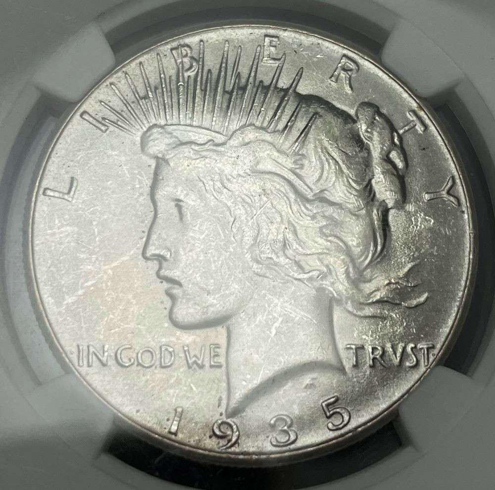Sold1935 PEACE SILVER DOLLAR NGC MS63WATCH FOR OUR NEXT AUCTION ON MONDAY NOV. 2ND, 2020.See Sold Price