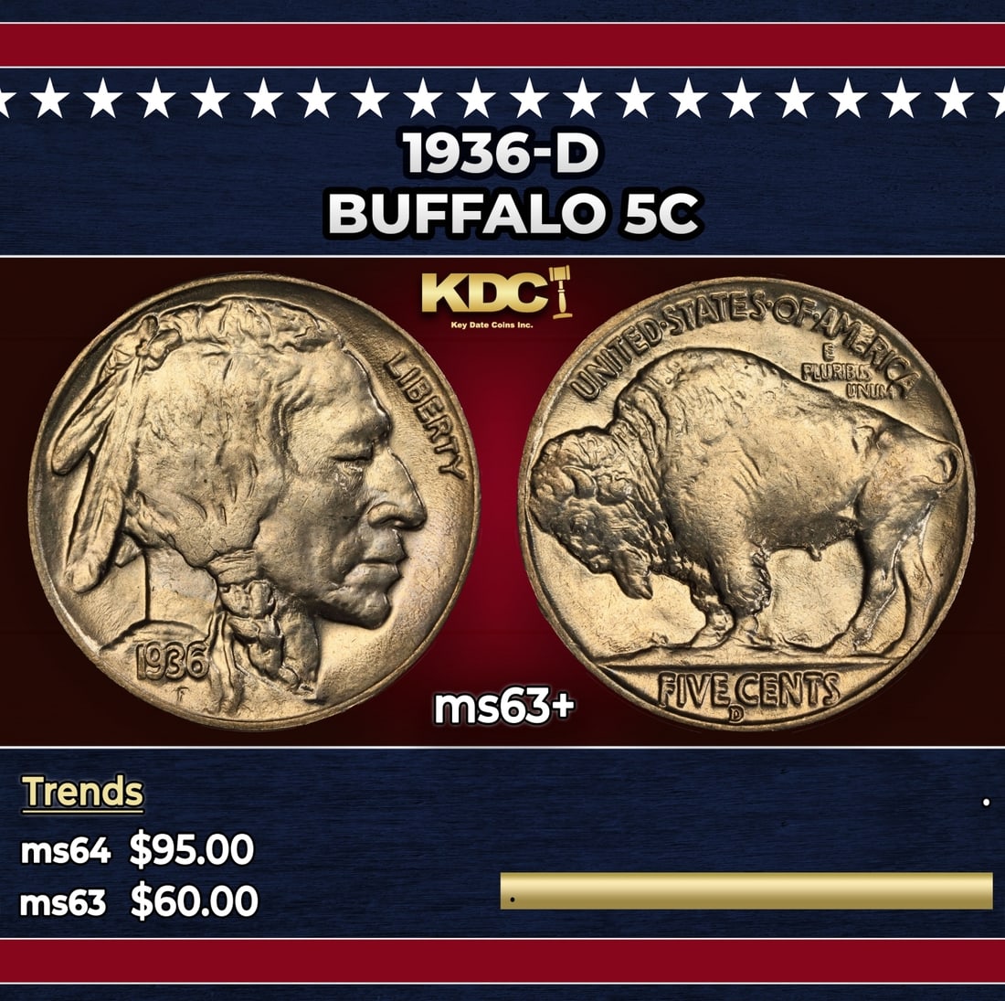 1936-d Buffalo Nickel 5c Grades Select+ Unc