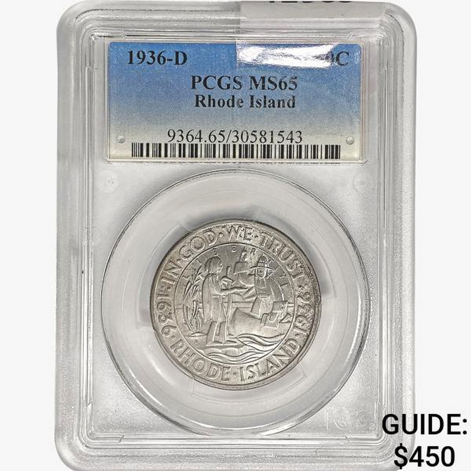 1936-D Rhode Island Half Dollar PCGS MS65