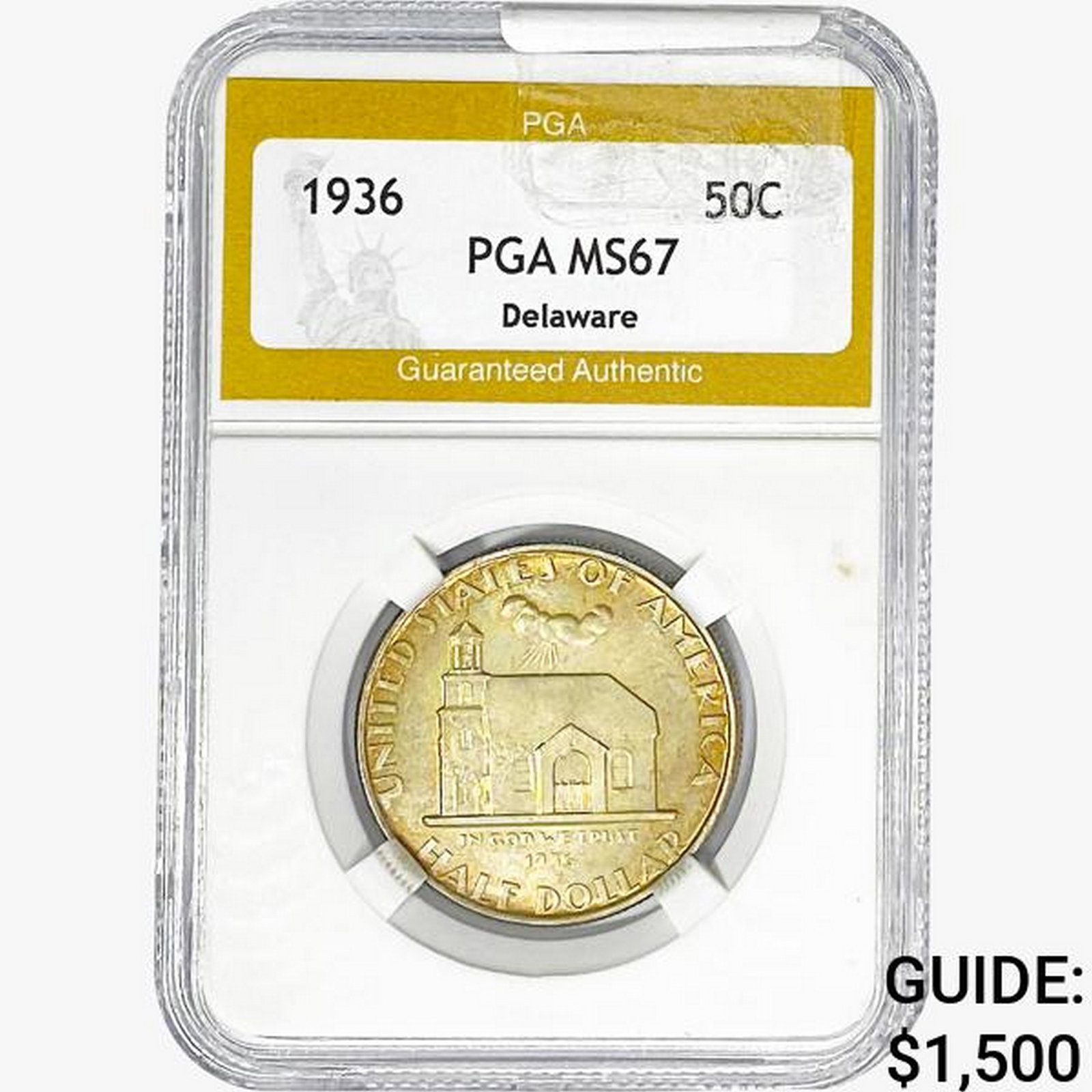 1936 Delaware Commemorative Half Dollar PCGS MS65 in Original Color
