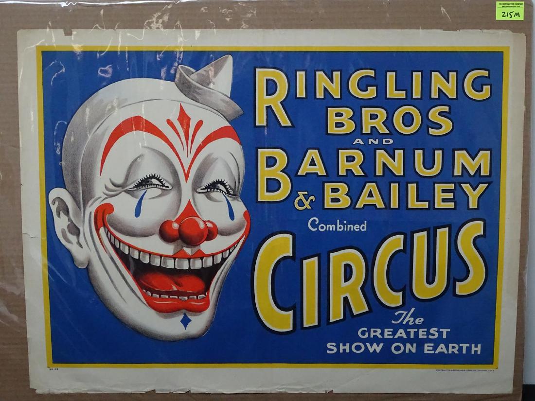 1936 RBBB 100-TEETH CLOWN LITHOGRAPH POSTER