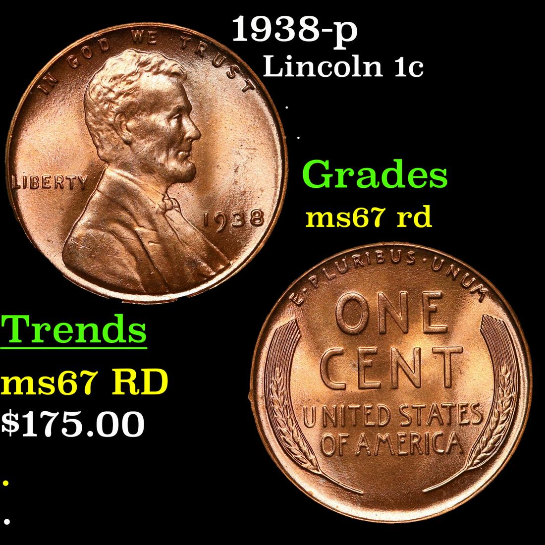 1938-p Lincoln Cent 1c Grades GEM++ Unc RD