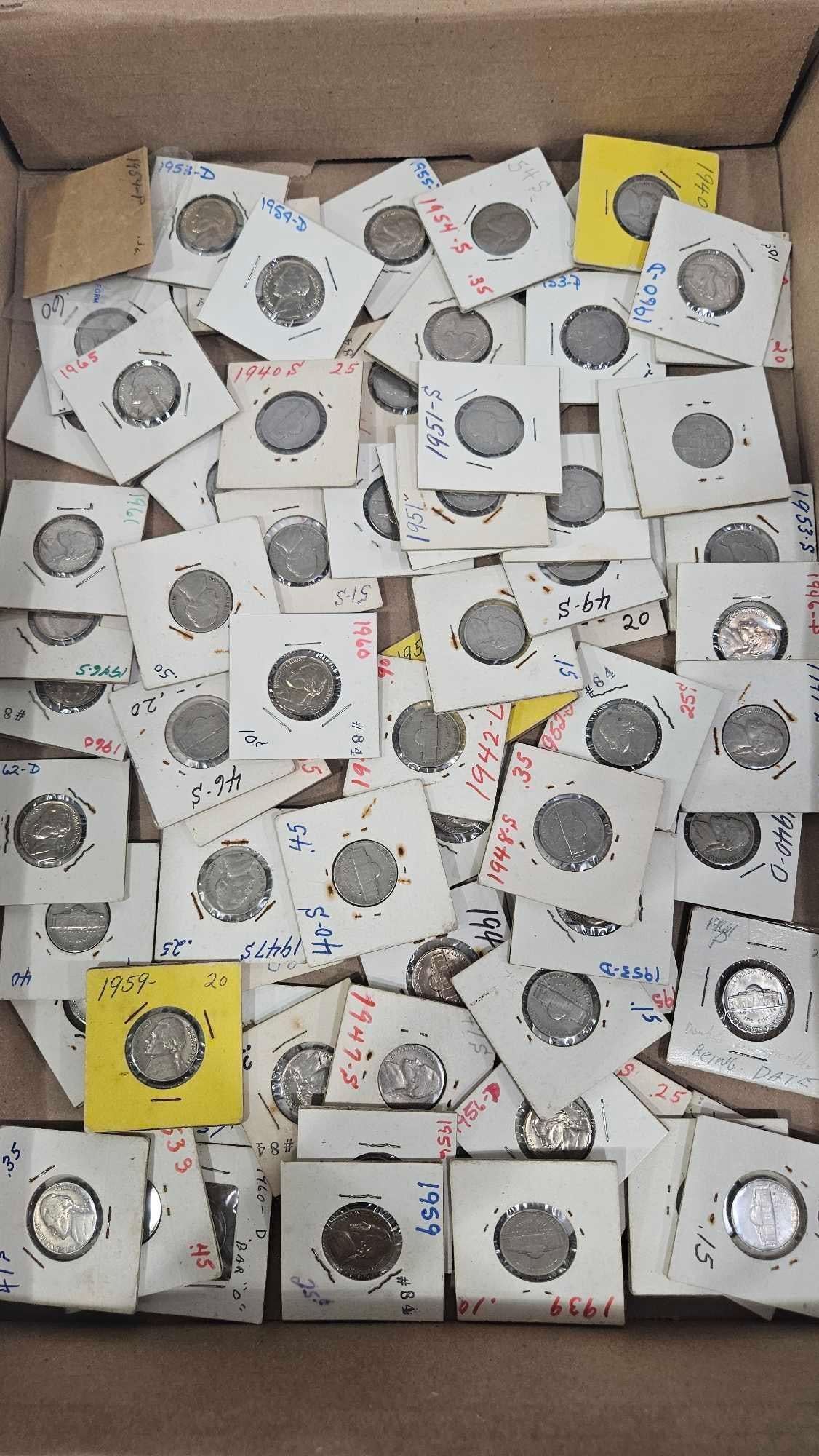 Lot of Buffalo Nickels4 days LeftJefferson Nickel Collection Lot of 32 Thirty Two Nickels CoinsMar 19, 2026US 1909-1966 Barber Dime and Jefferson Nickel Lot, Silver and CupronickelLot of 13 Jefferson Nickels - 1950sUSA 35%-Silver Jefferson WW2 Nickels (40)Mar 19, 2026US 1930-1937 Buffalo Nickels, Cupro-Nickel, 50 Pcs, KM-134Lot of 14 Jefferson Nickels - 1940-1949Lot of 16 Jefferson Nickels - 1970s - Some UncirculatedLot of 9 Jefferson Nickels - 1961-1969 - Many Uncirculated & ProofsUS 1935-1964 Washington Quarter Dollars, 90% Silver, KM-164US 1946-1964 Roosevelt Dime Collection, Silver, KM-19522 United States Jefferson War Nickels, 1942-1945Mar 26, 2026Group of 16 US Buffalo Nickels4 days LeftSet of 11 Jefferson Silver War Nickels 1942-1945 Uncirculated in HolderMar 18, 2026A Collection of United States Jefferson NickelsMar 26, 2026Silver U.S. Currency/Coins Dating 1838 to 1964Mar 28, 2026