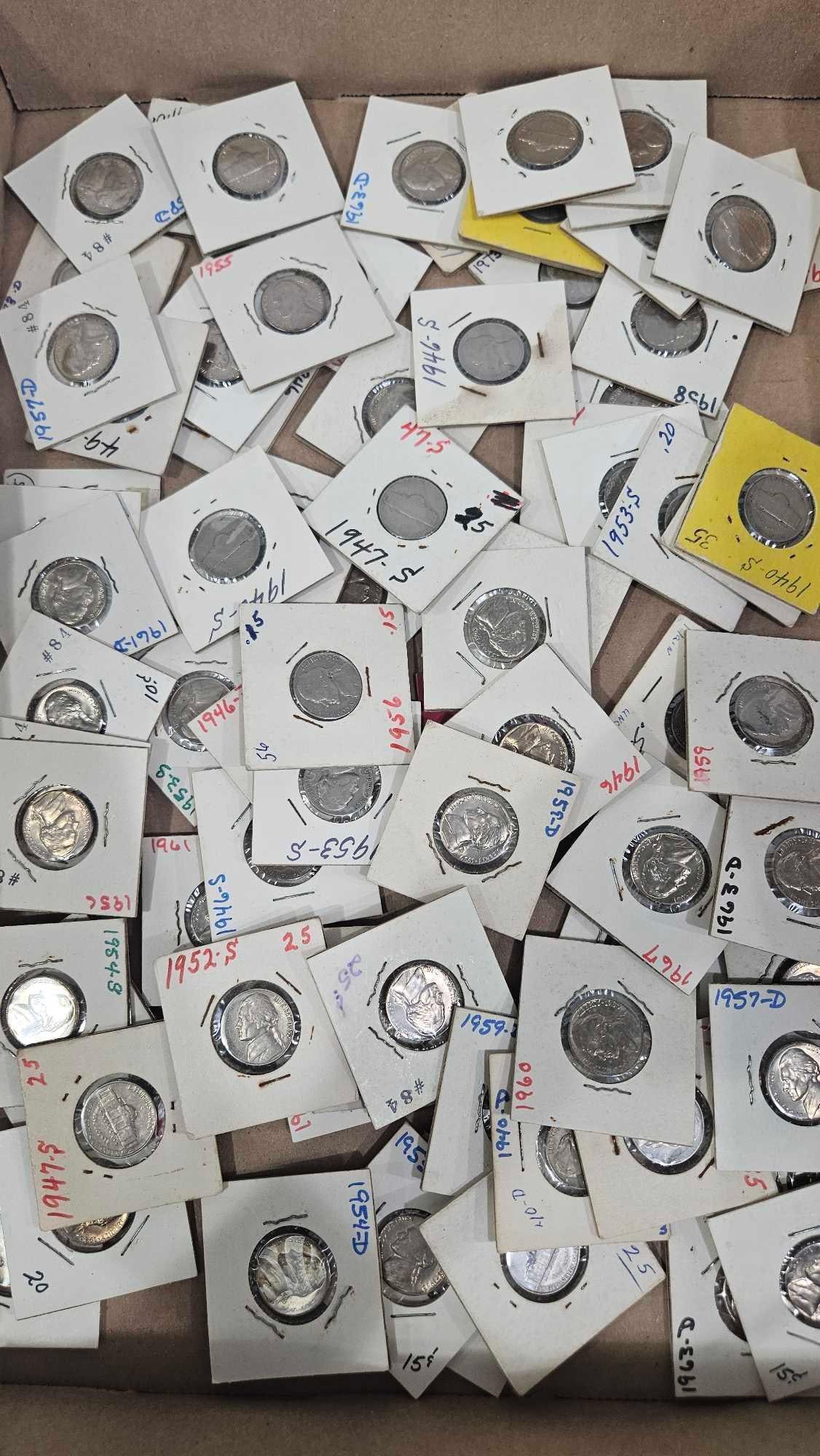 [9 Coins] 1944-1961 U.S. 50C LotFeb 27, 2026Collectible Coin Lot (5)4 days LeftLOT ASST. U.S. SILVER INCL. QUARTERS, DIMES, $6.70 F.V.4 days LeftUS 1936-1964 Quarter Dollar Lot, 90% Silver, KM-164US 1928-1937 Buffalo Nickel Lot, Copper-Nickel, KM-134US 1939-1964 A Lot of Washington Quarters, 90% Silver, KM-164US 1909-1966 Barber Dime and Jefferson Nickel Lot, Silver and CupronickelLot of 300 Jefferson NickelsLot of 300 Jefferson NickelsLot of American Silver CoinsMar 07, 2026Lot of 38 1942-1945 Silver Wartime NickelsUS 1930-1937 Buffalo Nickels, Cupro-Nickel, 50 Pcs, KM-134(7) 1940s-1950s United States 90% Silver Coins5 days Left(5) 1850s-1935 US Pennies, 3c Nickel and Nickels5 days Left(15) US Coins Silver Various 1920s - 1970s US Coins - Loose5 days Left$249.15 Face Value United States Coinage Featuring Jefferson Nickels and Eisenhower DollarsFeb 26, 2026