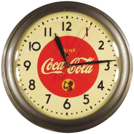 Chevrolet Time neon clock by LacknerMar 28, 20261940 Drink Double Cola Thermometer and Drink Nesbitt's Orange ClockMar 20, 2026A&P Coffee electric wall-mount clockMar 28, 20261939 Drink Coca-Cola ClockMar 14, 2026Drink Coca Cola 14.5" Lighted Advertising ClockMar 21, 2026Drink Coca Cola 15.5" PAM Advertising Clock w/ Fishtail LogoMar 21, 2026ORIGINAL SQUARE COCA-COLA LIGHT-UP BUBBLE CLOCK2 days LeftDrink Coca Cola 15.5" PAM Advertising Clock w/ Fishtail LogoMar 21, 2026TIN DRINK COCA-COLA CLOCK MOUNTED TO ORIGINAL KAY BACKBOARD2 days LeftDrink Coca-Cola Electric Advertising ClockMar 14, 2026Drink Coca Cola 15.5" PAM Advertising Clock w/ Fishtail LogoMar 21, 2026Drink Coca Cola On Bottles Cleveland ClockMar 20, 2026Drink Coca-Cola Electric Clock 15"Mar 14, 2026COCA-COLA LIGHT-UP FISHTAIL CLOCK2 days LeftWOODEN COCA-COLA ADVERTISING CLOCK2 days LeftCOCA-COLA ELECTRIC WALL CLOCK2 days Left