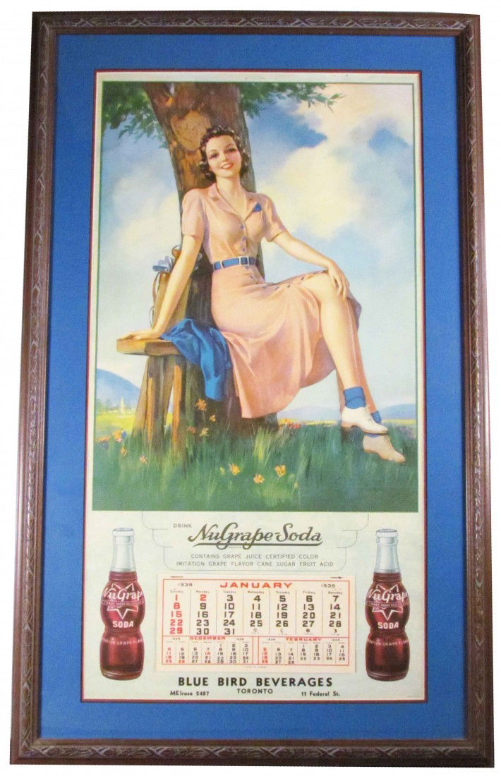 1941 Pepsi Cola Framed Pin Up Girl CalendarMar 21, 20261939 framed calendar advertisementMar 28, 20261943 Pepsi Cola Self Framed Easel Back Cardboard Pin Up GirlMar 20, 2026Vintage Framed Coca-Cola 1935 CalendarFive Roses Flour "Harvest Queen" 1924 CalendarMar 08, 2026Peters Cartridge Company advertising calendar.5 days LeftGreenwood Liquor Co., British Columbia 1899 CalendarMar 08, 20261957 The Osborne Company Pin Up Girl CalendarMar 21, 20261926 calendar for J.J. Hughes CoMar 27, 2026Nugrape Soda "A Flavor You Can't Forget" SST Thermometer w/ Twin BottlesMar 21, 2026Drink Coca Cola "The Pause that Refreshes" Cardboard Sign w/ Wooden FrameMar 20, 20261950 Drink Pepsi Cola Ice Cold Certified Quality Single Sided Cardboard SignMar 21, 20261950 Serve Coca Cola Double Sided CardboardMar 20, 2026Texaco Service Station Pepsi-Cola Promotion PosterMar 07, 20261932 Scena Illustrata Arts Literature Music Theatre Girl CoverMar 01, 2026Maas & Steffen advertising calendar.5 days Left