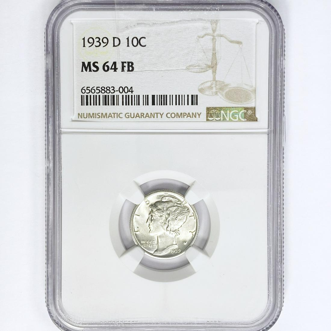 1939-D Mercury Silver Dime NGC MS64 FB
