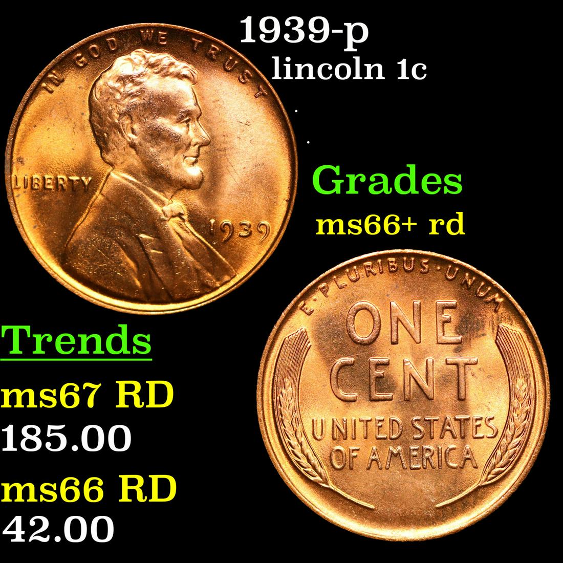 1939-p Lincoln Cent 1c Grades GEM++ RD
