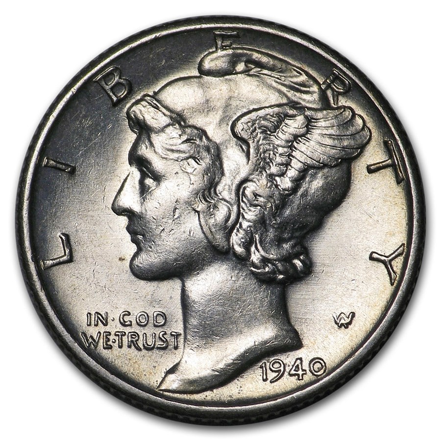 Sold1940 Mercury Dime 10c BuThis 1940 mercury dime is a great coin to add to a 20th-century type set. Containing 0. 0715 troy oz of silver with a purity of . 900, this coin was designed by adolph weinman. The obverse depicts a ySee Sold Price