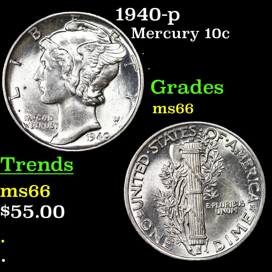 1940-p Mercury Dime 10c Grades GEM+ Unc