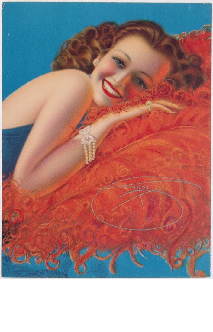 1940s Pin-Up Redhead and Feathers - DeVorss