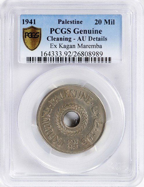 1942 Palestine 20 Mils ANACS MS 63 Brown Certified Coin