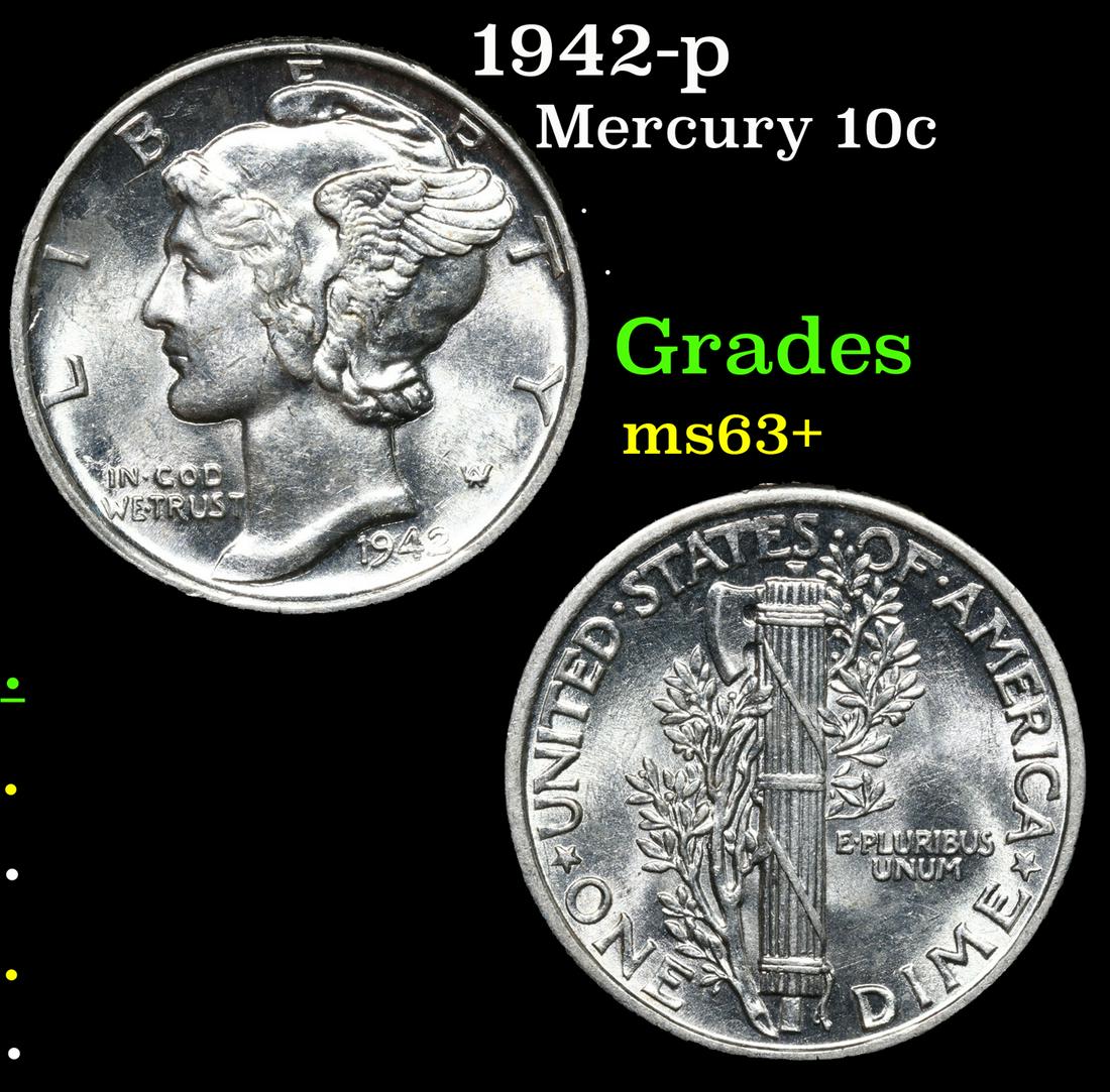 1942-p Mercury Dime 10c Grades Select+ Unc