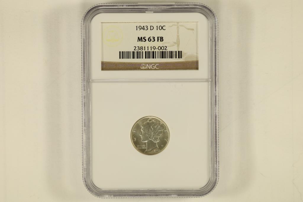 1943-D SILVER MERCURY DIME NGC MS63FB
