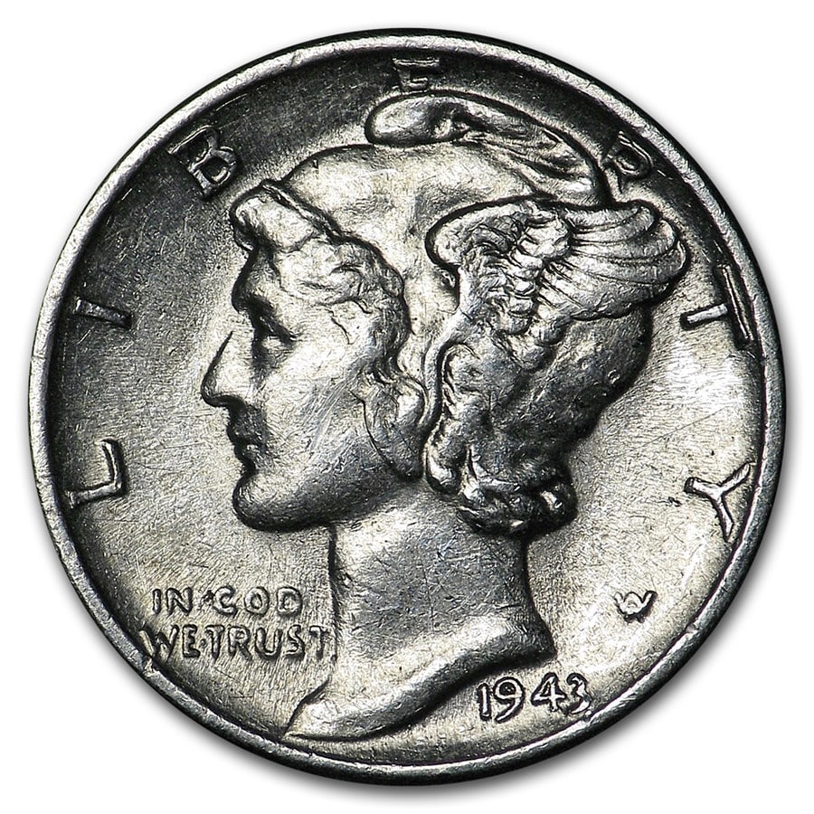 Sold1943 Mercury Dime AU1943 Mercury Dime AU SKU no: RBJ5896 Year: 1943 Grade: Almost Unc Grade Service: None Denomination: $0.10 Mint Mark: P - Philadelphia (Not Shown) Metal Content: 0.0715 troy oz PuSee Sold Price