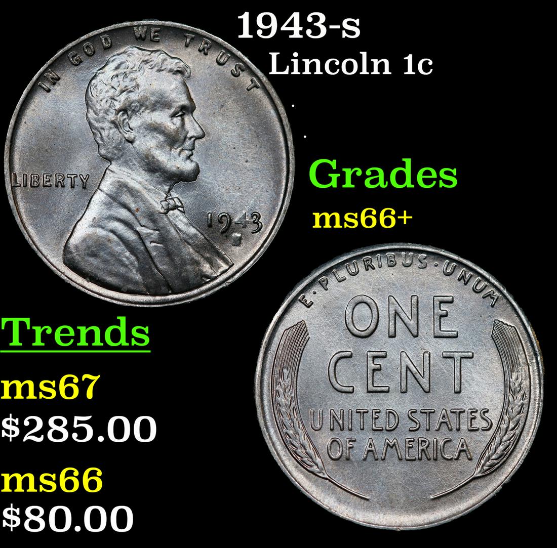 1943-s Lincoln Cent 1c Grades GEM++ Unc