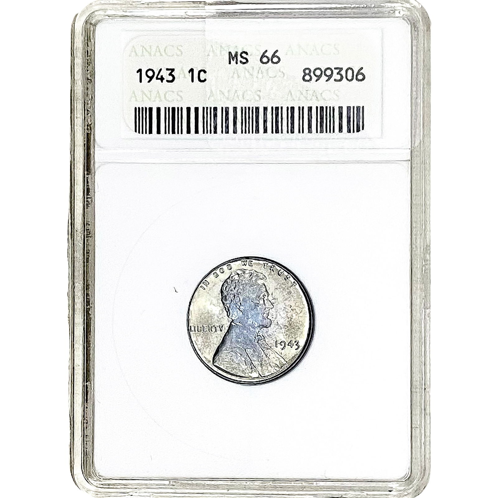 SoldANACS 1943-D LINCOLN STEEL WHEAT CENT MS66ANACS 1943-D LINCOLN STEEL WHEAT CENT MS66 1943 Denver Mint Lincoln head wheat penny one cent coin graded MS66 by ANACS. Shipping / Pickup: We Can Ship This ItemSee Sold Price